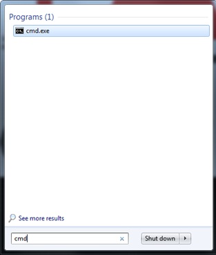 search box. CMD is the abbreviation for command prompt. It is in this utility that that we will primarily be working. You can also get to this utility by typing cmd.exe or command.com into your ‘search programs and files’ search box.